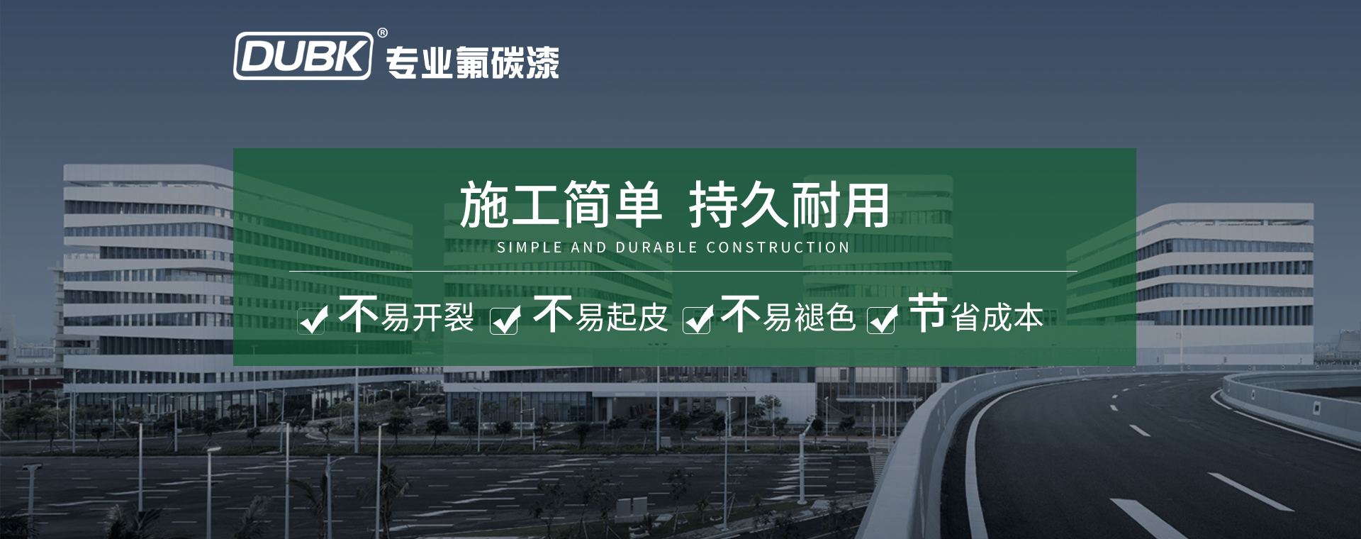 Dubk·杜比克氟碳漆成立多年來秉承“超耐用,施工簡單,貼心價位”的經營理念,已為國內外數萬家工程公司完成了外墻、鋼結構及橋梁、隧道、城市改造的高標準氟碳漆應用,得到了客戶的肯定!