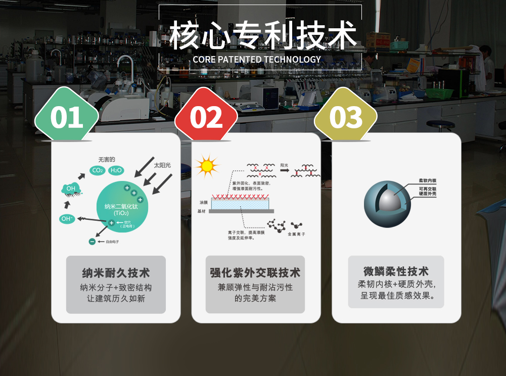 選用優質原料及優異配方,具有優異的耐沾污性及耐候保色性。產品豐富的色彩選擇,能夠搭配出建筑物不同的裝飾效果與風格,具有優異的保護及裝飾功能,使建筑四季靚麗,持久如新。